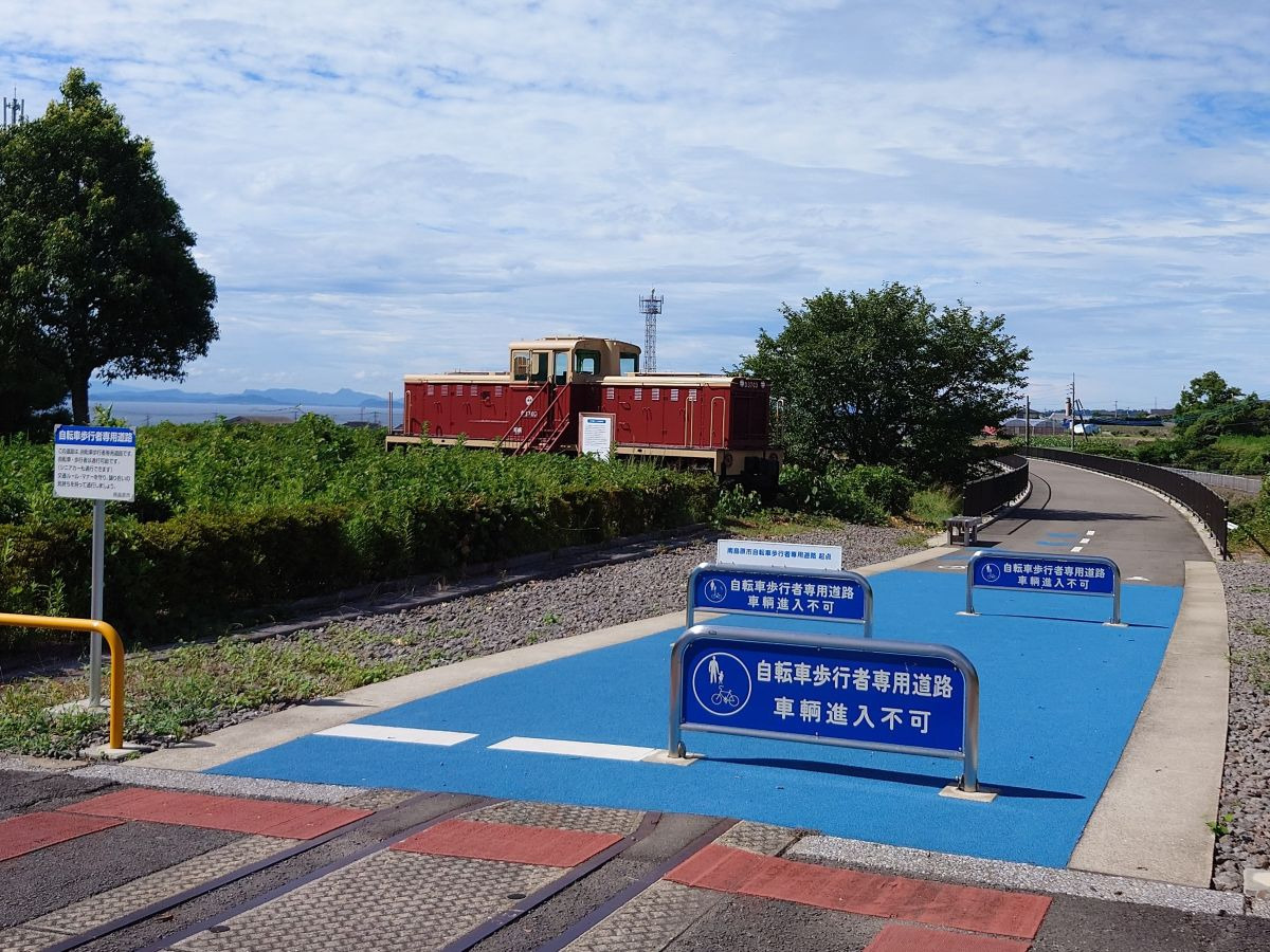 島原鉄道南線跡地を活用したサイクリングロード入口!