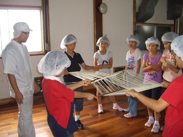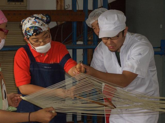 伝統の「手延そうめん」を支える職人技を体験できる「そうめんの大引き体験」。