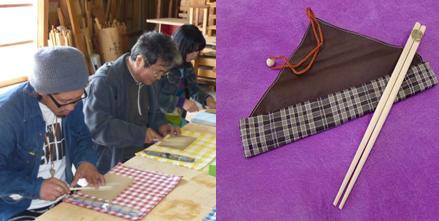 箸作り体験には、布袋が付いており、外出時に箸入れとしても利用できます。また、プレゼント用としても最適です。