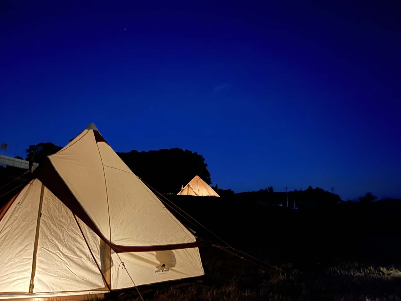 | 料金に含まれるもの | 【レンタル品】 テント、シュラフ、イス、テーブル、BBQ台、ランタン2個、水タンク、焚火台 【その他】 地元野菜、おにぎり、豚肉(地元産SPF豚)、炭3kg、薪2束 |