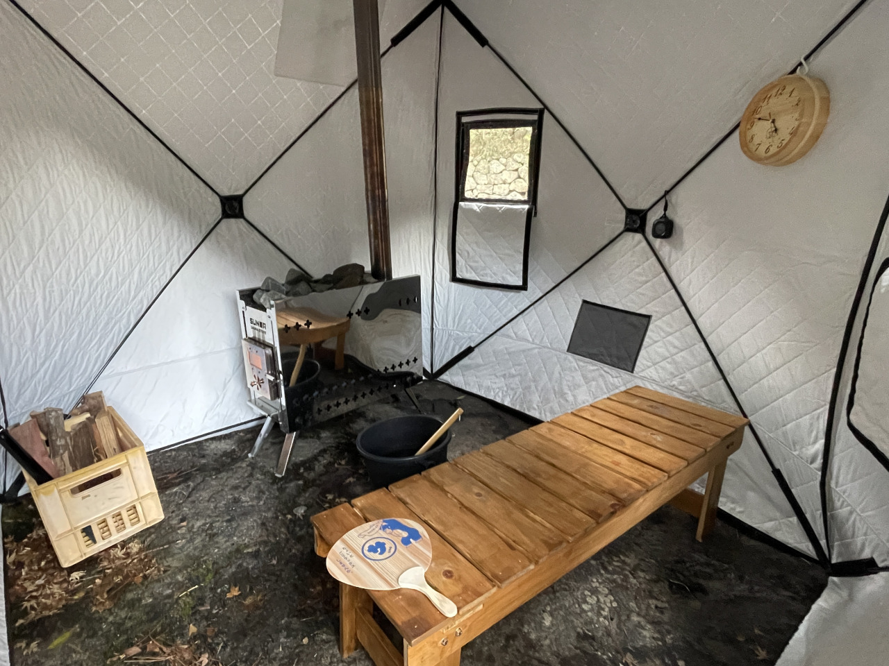 | ミネラルウォーター500ml人数分、薪2束付き! |