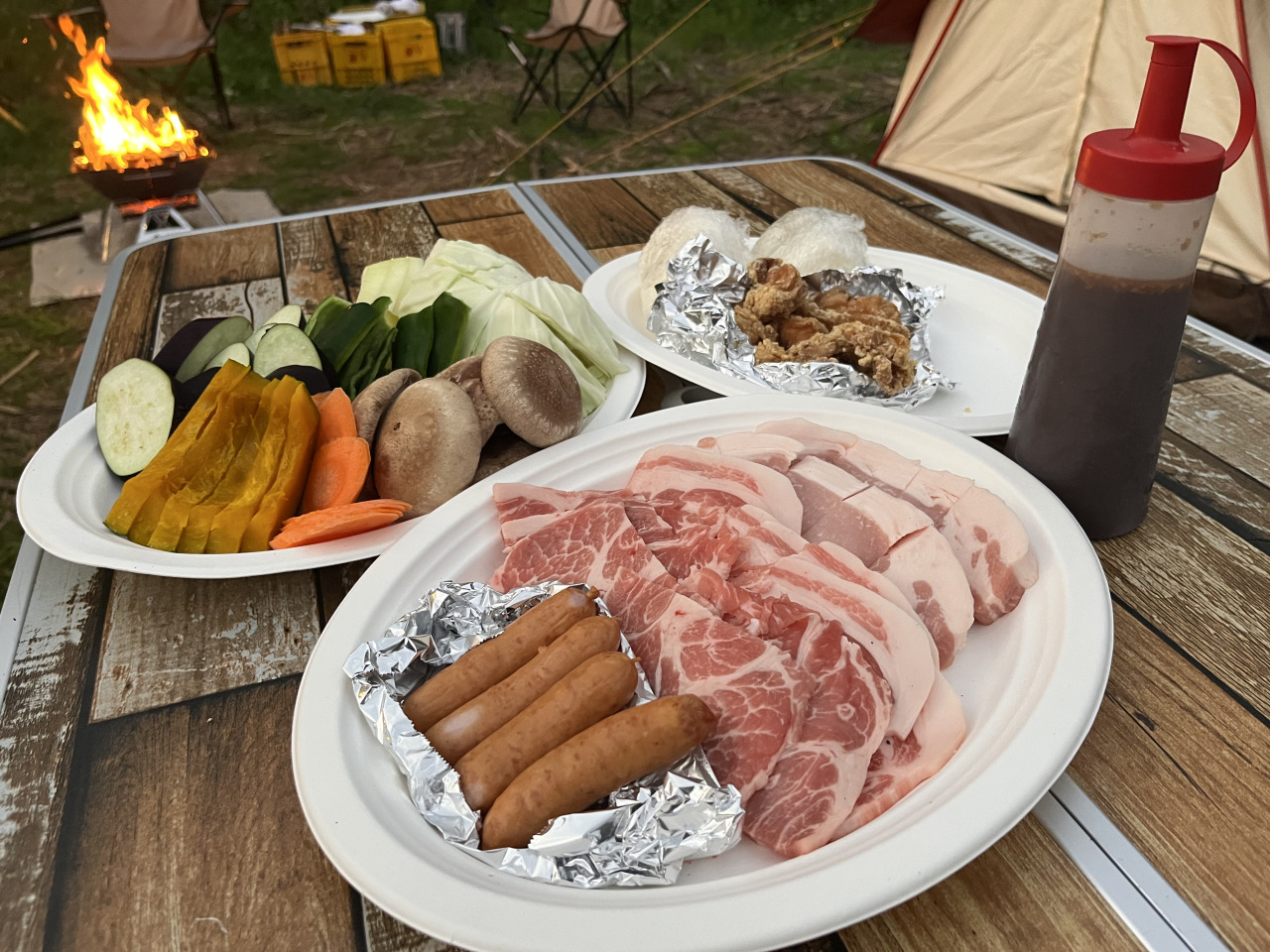 | ミネラルウォーター500ml人数分、薪2束+炭3kg付き! |
