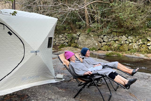 ポンチョ、ハット貸出付きなので手ぶらでOK!絶景テントサウナ