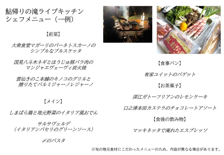 | 料金 | 18,000円/大人1名 ※2名様より承ります |