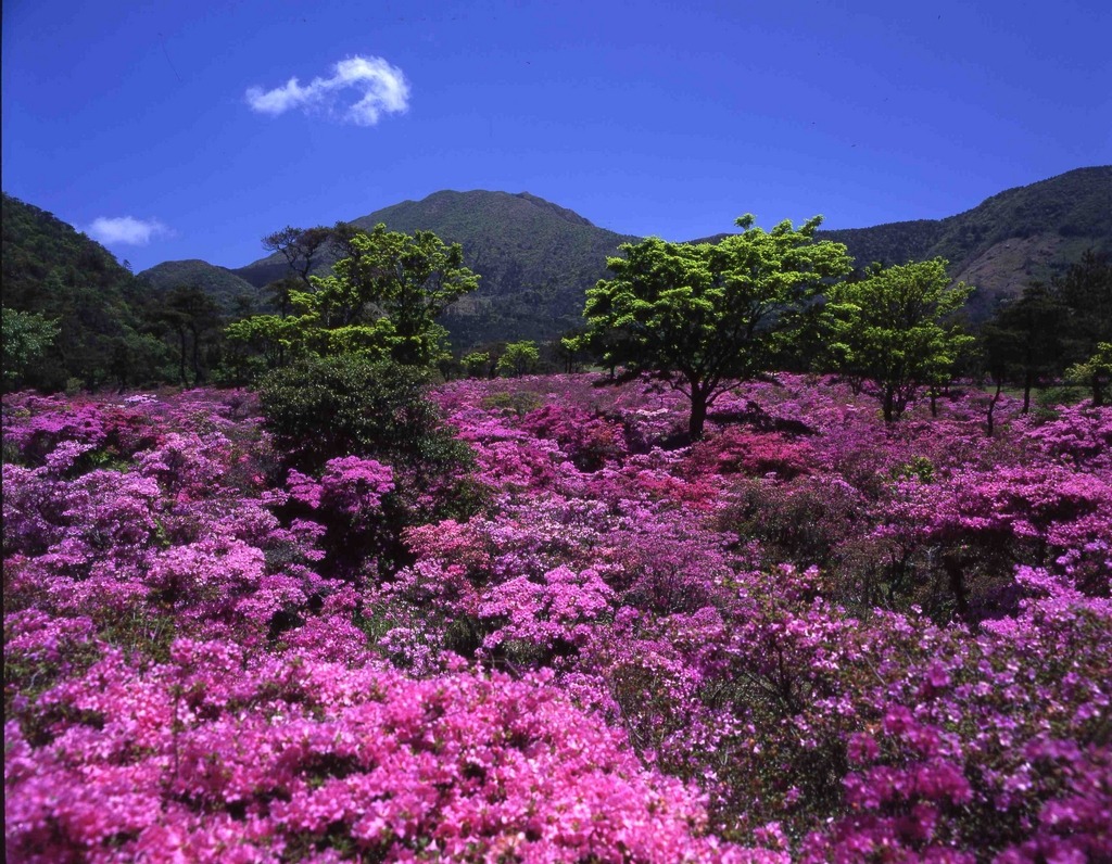 木々がきみどり色の衣に着替えると、山はピンクのミヤマキリシマで見事に染め尽くされていき、雲仙は彩り豊かな季節を迎えます。